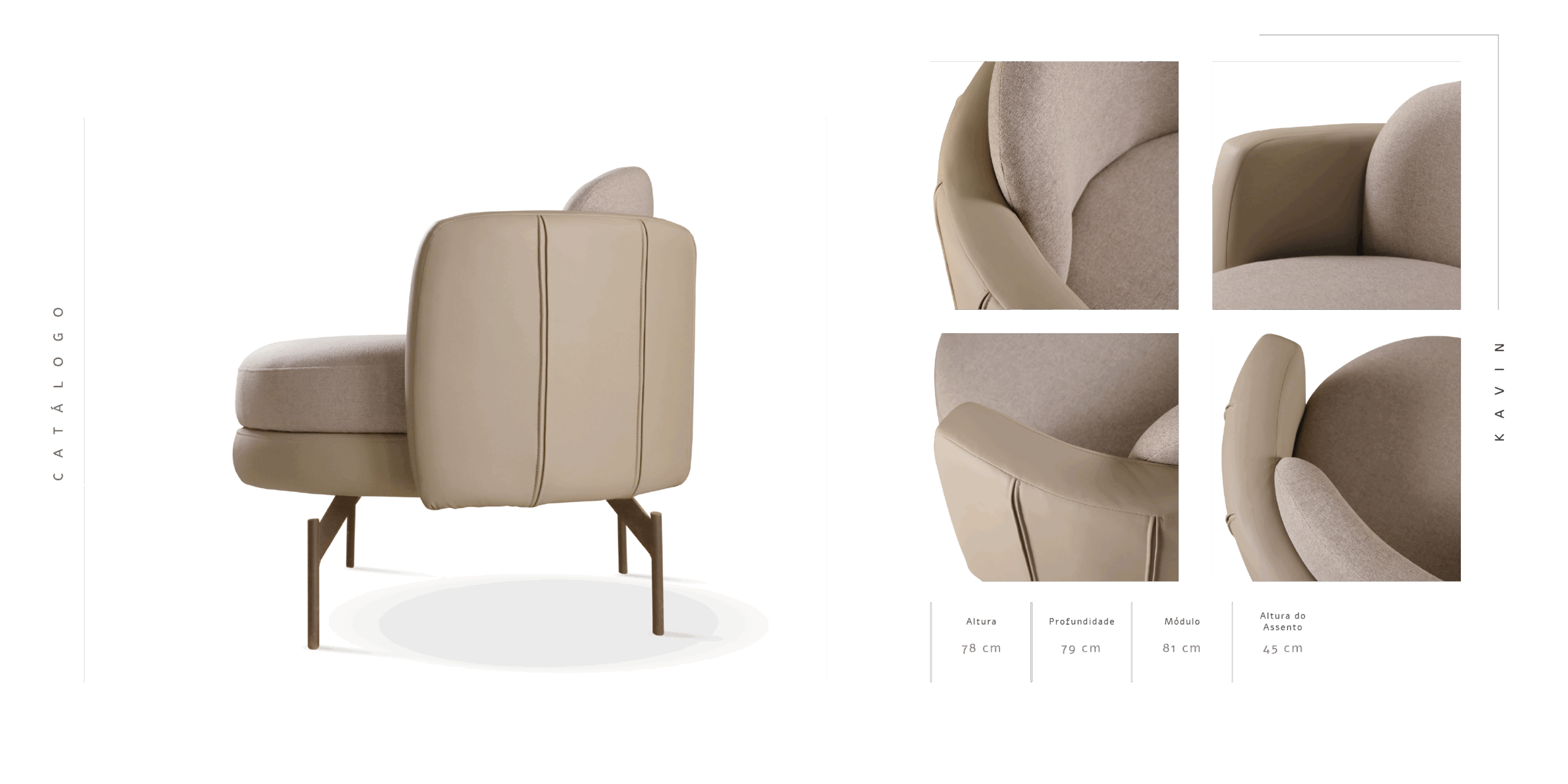 Assento: Composto por 2 camadas de espuma revestidas com manta de poliéster, sendo a inferior com densidade de 35 kg/m3 (D35) e a superior com espuma softreturn com densidade de 40 kg/m3 (D40)
